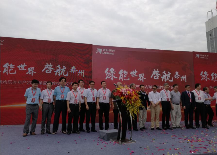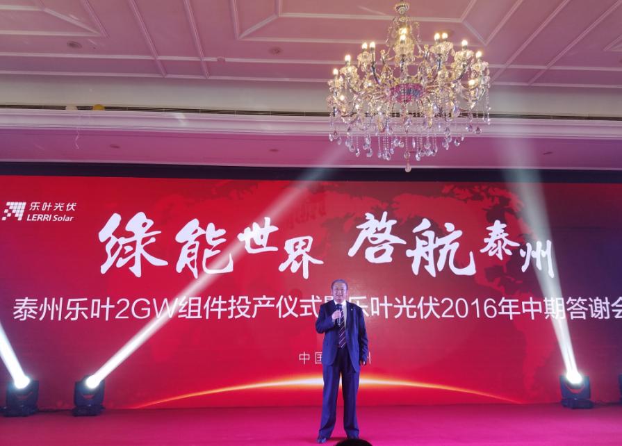 2016年9月6號,細雨綿綿,彩旗飄展,江蘇泰州市海陵區(qū)隆基樂葉2GW太陽能電池組件一體化項目舉行隆重的投產儀式。隆基股份董事長鐘寶申發(fā)表主旨演講。國務院參事、中國可再生能源學會理事長石定寰、國家發(fā)改委國際新能源研究所所長王進、招商新能源CEO李原、泰州市海陵區(qū)徐克儉書記等先后發(fā)表了熱情洋溢的講話。充分肯定了泰州樂葉建設的高速度、產能的高效化、盛贊隆基股份已成為國際單晶硅、硅片、電池、組件的最大供應商之一。