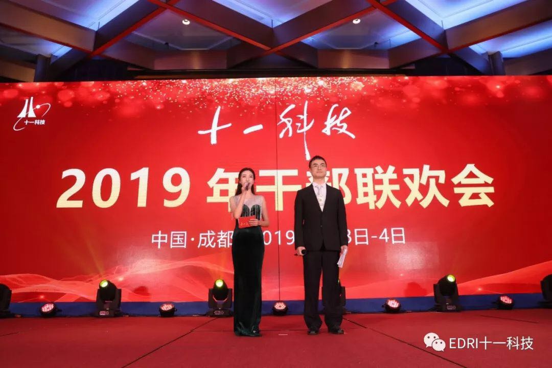 “迎著三月的春風(fēng),在這繼往開(kāi)來(lái)的日子,我們?cè)僖淮螝g聚一堂,慶賀我們收獲的業(yè)績(jī),規(guī)劃我們光明的未來(lái)。” 3月3日晚18時(shí),隨著青春靚麗的李慶妤、陽(yáng)光帥氣的王興精彩的主持開(kāi)場(chǎng)白,伴著全場(chǎng)400余名干部震天動(dòng)地的掌聲,十一科技2019年初春干部聯(lián)歡會(huì)在世茂成都茂御酒店宴會(huì)大廳正式拉開(kāi)帷幕。