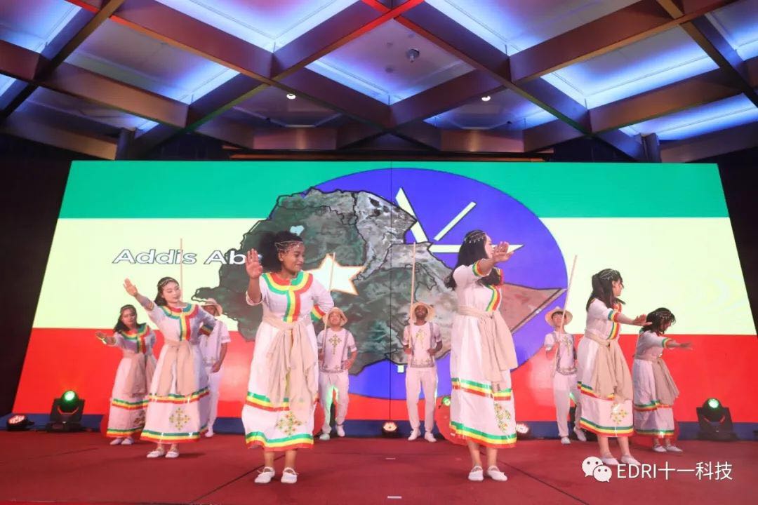 埃塞員工和同事一起合作的充滿(mǎn)埃塞特色的舞蹈《一帶一路,走進(jìn)非洲》,讓我們足不出大廳就領(lǐng)略了埃塞和非洲的風(fēng)情和音樂(lè)。