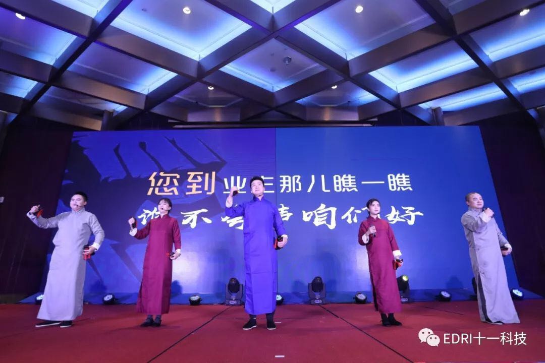 群口快板《回顧2018,展望2019,騰躍奮進(jìn)奔前方》,快板節(jié)奏明快,口播瑯瑯上口,配以超大字幕顯示,讓大家對(duì)愛(ài)德公司2018年成就和2019年規(guī)劃印象深刻,贏得了全場(chǎng)一片叫好。