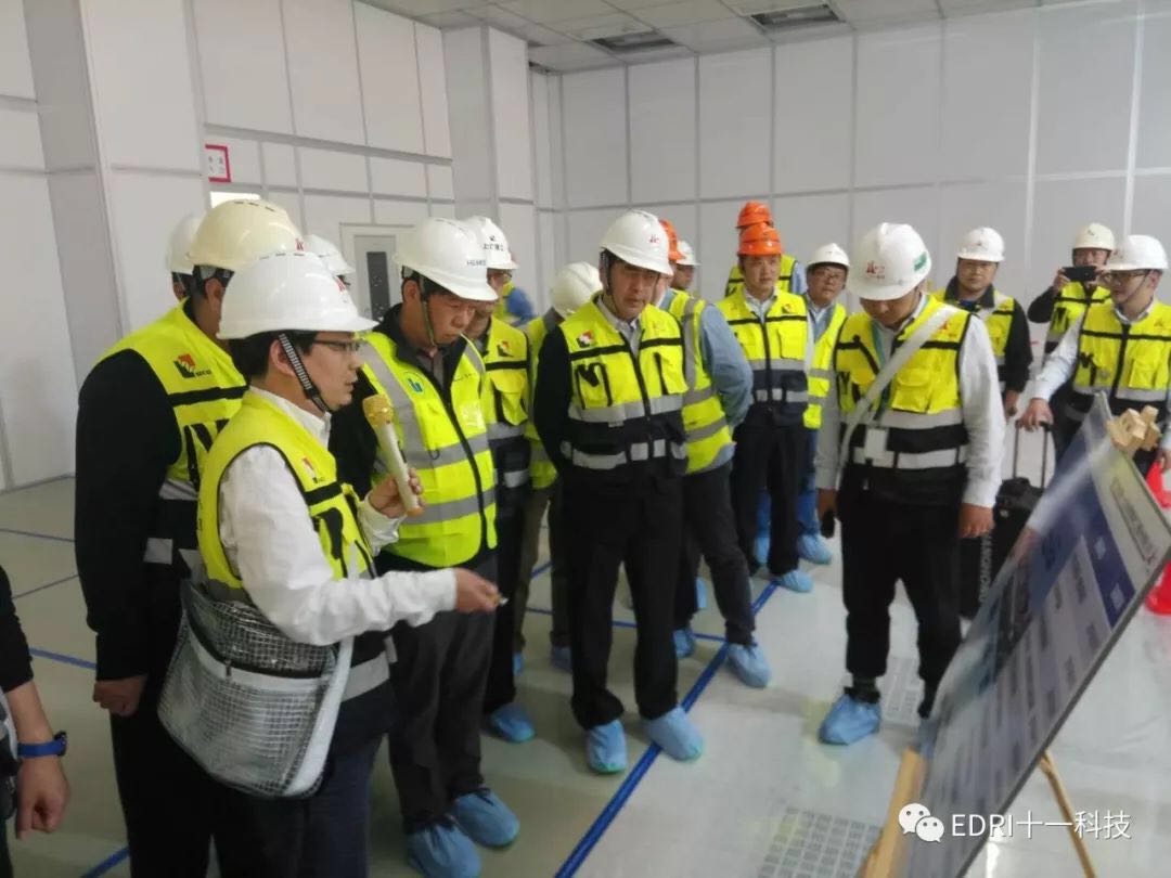 在總包聯(lián)合體的引導下,張素心、陳劍波、唐均君、趙振元、白焰等同志到F1潔凈室、V1變電站、C1動力廠房進行參觀,并聽取了聯(lián)合體總包單位及相關分包單位的匯報。