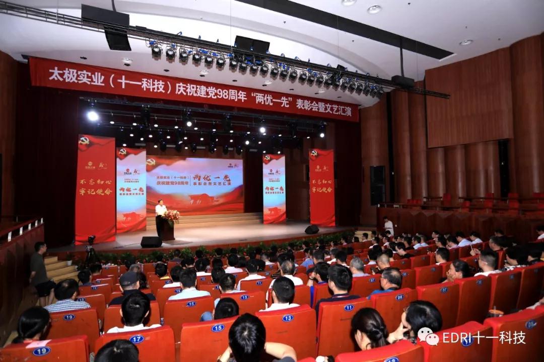 6月16日晚,浙江嘉興南湖音樂(lè)廳,紅色炫動(dòng),太極實(shí)業(yè)(十一科技)慶祝建黨98周年“兩優(yōu)一先”表彰會(huì)暨文藝匯演,華美上演。