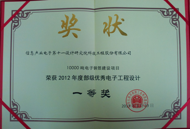 • 10000噸電子銅箔部級(jí)一等獎(jiǎng)